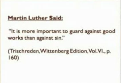 important to guard them against good works than against sin." (Wittenberg, VI, 160, quoted by O'Hare, in 'The Facts About Luther,
