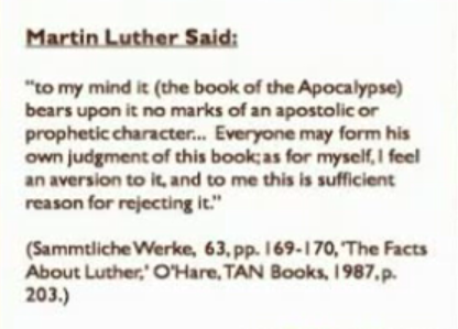 Martin Luther rejects the book of Revelation the Law of God and the Ten Commandments.