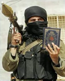 Example from the Quran of Islam: Allah says in Quran: [47.4] So when you meet in battle those who disbelieve, then smite the necks until when you have overcome them, (sourat mohamed 47:4 to 6)]